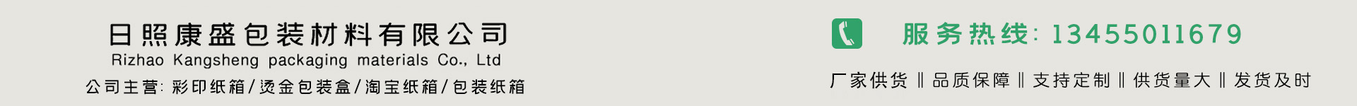 ????日照康盛包裝材料有限公司位于山東半島的尾翼、水上運動之都--日照,山東省日照市經濟開發區重慶路與海口路交匯處南100米 ,于2009年06月23日在日照經濟技術開發區市場監督管理局注冊成立,注冊資本為2000萬元人民幣。本公司具有一定實力的企業,公司集紙箱 披薩盒,搬家紙箱,彩印紙箱設計、印刷、后道裝訂包裝等自主設計 印刷生產與一體的公司。 公司擁有日本先進的制版系統、印刷機及裝訂設備,富士CTP直接制版,小森對開四色,四開四色、六開四色、對開1+1及多臺單色印刷機,并配置了折頁機、鎖線機、膠裝機、騎訂機及自動過膠機、全自動啤機、燙金機、裱紙機、粘盒機等先進自動化后加工設備。